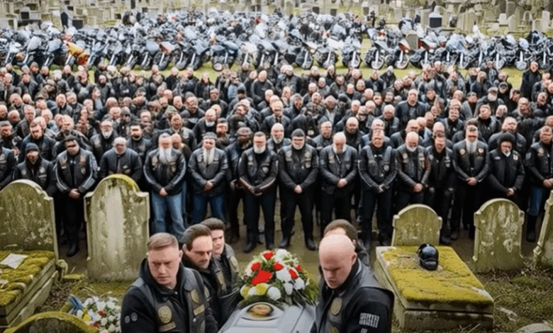 Six men—each from a different club—carried the coffin. Three hundred more followed, engines growling low, a rolling heartbeat of thunder. The cemetery shook with it.