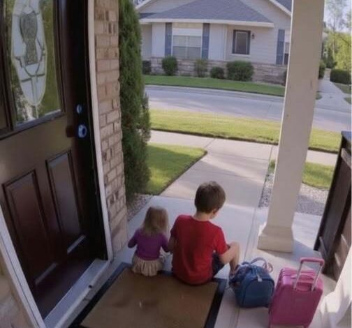 When I pulled into the driveway that afternoon, the sight waiting for me nearly stopped my heart. My two kids—Carmy, ten, and Etta, seven—were sitting on the front steps with their suitcases beside them. No trip was planned. No reason they should’ve been there.