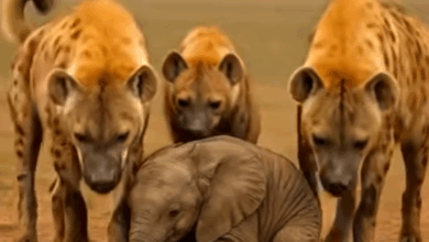 A pack of hyenas surrounded a small and helpless baby elephant, ready to attack – but you wont believe who came to its rescue