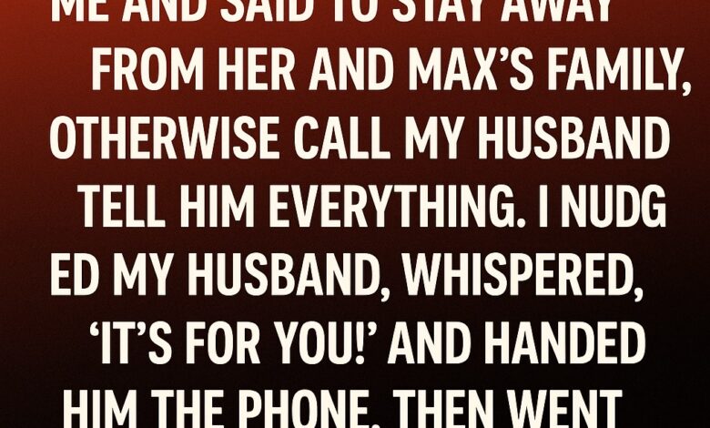 “Stay away from Max and his family,” she snapped. “Or I’ll tell your husband everything.”